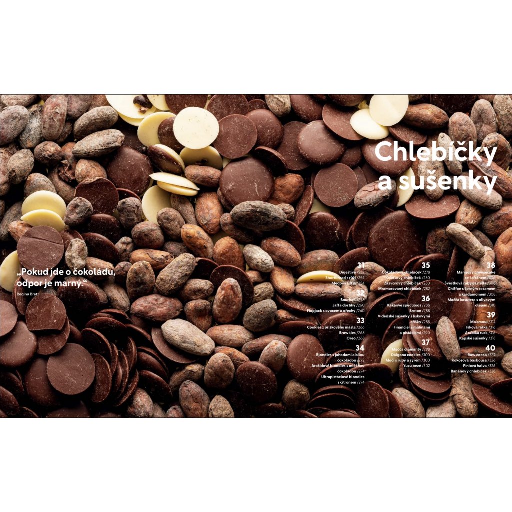 Neuvěřitelných 450 stránek dechberoucích zážitků. Cesta lemovaná mými vlastními recepty vás zavede do tajemného světa čokolády, kde jen samotné přivonění laská všechny smysly. Recepty rozepsané krok po kroku a stovky doprovodných fotografií vám umožní upéct luxusní čokoládová díla s lehkostí a vášní. Díky přehlednosti a detailnosti každého receptu snadno zvládnete i ty nejsložitější techniky profesionálního chocolatiera. V knize vás čeká čokoládová vánočka i nádherně nadýchané mléčné housky. Každé kousnutí do kakaového chleba Pain au cacao nebo do plněných tortelini způsobí výbuch rozkoše. Nechybějí ani delikátní kreace francouzské patisserie, jakými jsou eclairs nebo macarons. Své blízké ohromíte na přípravu snadnými dorty, luxusními bonbony nebo hříšnými lanýži. Čokoládové putování smyslným světem uzavírají sametově hedvábné pomazánky, lahodné horké čokolády a opojné likéry. Díky jedinečným receptům této kuchařky se každý z vás může stát mistrem své kuchyně. Ponořme se spolu do ultimátního potěšení z noblesní, božské, a především návykové ingredience – čokolády. S největší a nejkomplexnější knihou, která kdy byla o pečení s čokoládou sepsána.