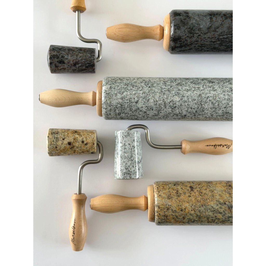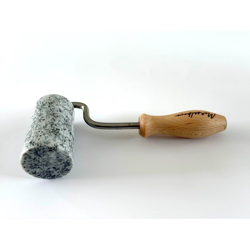 Vyrobený je z vysoce kvalitního granitu, každý kus je ručně opracovaný do hladkého, leštěného povrchu, který zabraňuje přilepování těsta. Díky své ideální váze 0,5 kg poskytuje dostatečný tlak bez nutnosti nadměrné síly, čímž umožňuje snadné a rovnoměrné rozválení těsta do jakékoliv podoby a nebo do dokonalého tvaru.