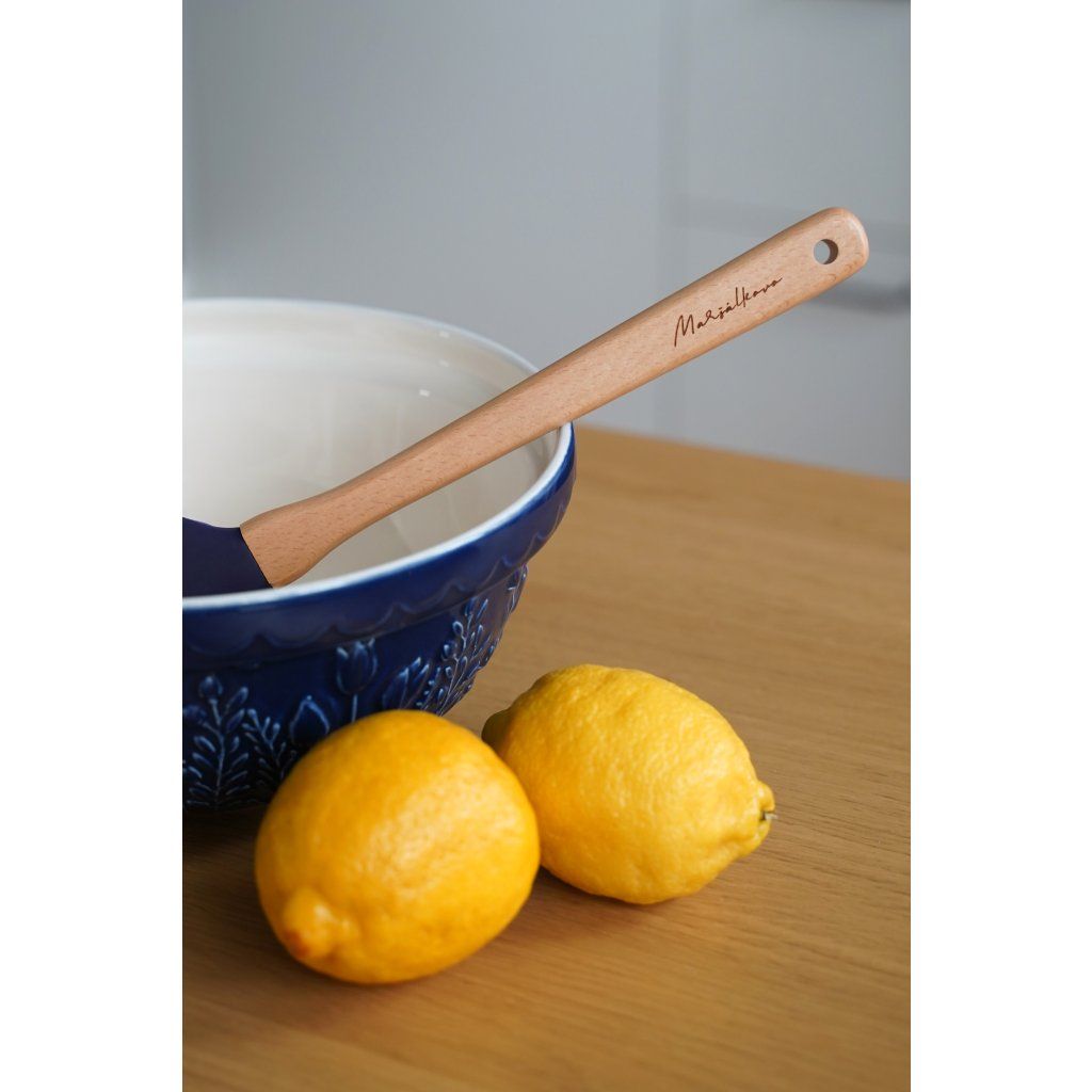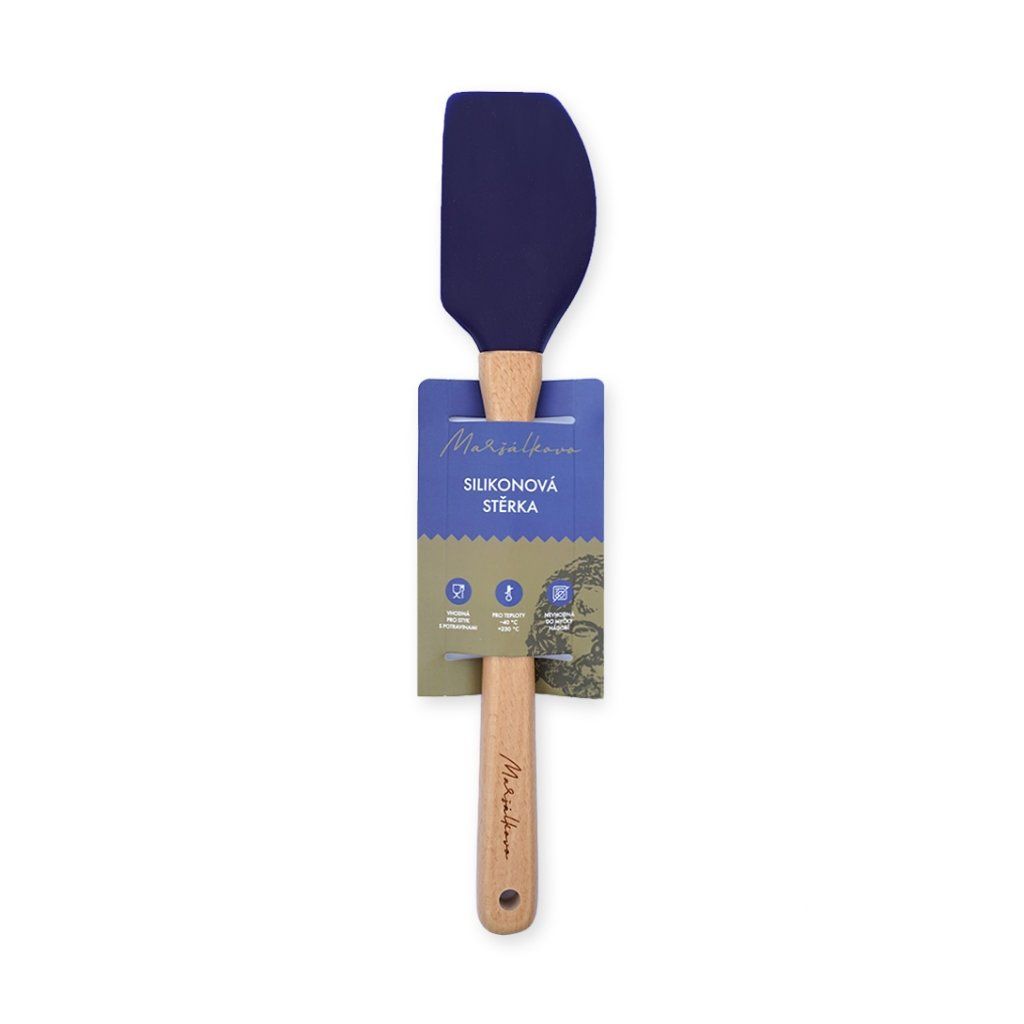 Precizní silikonová stěrka pro každodenní cukrářskou práci. Kombinace poctivého dřeva a silikonu v královsky modré.
